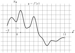 На рисунке изображен график производной функции f(x), определенной на интервале (−8; 4). В какой точке отрезка [−7; −3] f(x) принимает наименьшее значение?