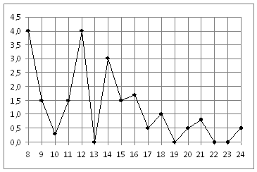 На рисунке жирными точками показано суточное количество осадков, выпадавших в Томске с 8 по 24 января 2005 года. По горизонтали указываются числа месяца, по вертикали — количество осадков, выпавших в соответствующий день, в миллиметрах. Для наглядности жирные точки на рисунке соединены линией. Определите по рисунку, какого числа впервые выпало наибольшее суточное количество осадков за данный период.