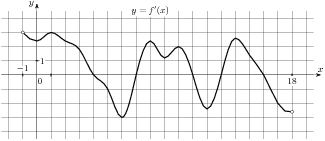 Точки экстремума соответствуют точкам смены знака производной. Производная меняет знак в точках −6, −2, 2, 6, 9. Таким образом, на отрезке [−10; 10] функция имеет
