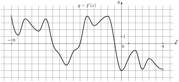 Точки экстремума соответствуют точкам смены знака производной. Производная меняет знак в точках −6, −2, 2, 6, 9. Таким образом, на отрезке [−10; 10] функция имеет