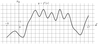 Точки экстремума соответствуют точкам смены знака производной. Производная меняет знак в точках −6, −2, 2, 6, 9. Таким образом, на отрезке [−10; 10] функция имеет