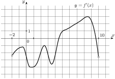 На ри­сун­ке изоб­ра­жен гра­фик про­из­вод­ной функ­ции f левая круг­лая скоб­ка x пра­вая круг­лая скоб­ка ,