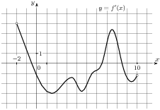 На ри­сун­ке изоб­ра­жен гра­фик про­из­вод­ной функ­ции f левая круг­лая скоб­ка x пра­вая круг­лая скоб­ка ,