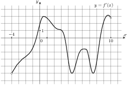 На ри­сун­ке изоб­ра­жен гра­фик про­из­вод­ной функ­ции f левая круг­лая скоб­ка x пра­вая круг­лая скоб­ка ,