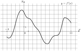 На ри­сун­ке изоб­ра­жен гра­фик про­из­вод­ной функ­ции f левая круг­лая скоб­ка x пра­вая круг­лая скоб­ка ,