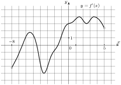 На ри­сун­ке изоб­ра­жен гра­фик про­из­вод­ной функ­ции f левая круг­лая скоб­ка x пра­вая круг­лая скоб­ка ,