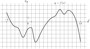 На ри­сун­ке изоб­ра­жен гра­фик про­из­вод­ной функ­ции f левая круг­лая скоб­ка x пра­вая круг­лая скоб­ка ,