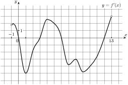 На ри­сун­ке изоб­ра­жен гра­фик про­из­вод­ной функ­ции f левая круг­лая скоб­ка x пра­вая круг­лая скоб­ка ,