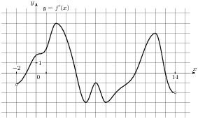 На ри­сун­ке изоб­ра­жен гра­фик про­из­вод­ной функ­ции f левая круг­лая скоб­ка x пра­вая круг­лая скоб­ка ,