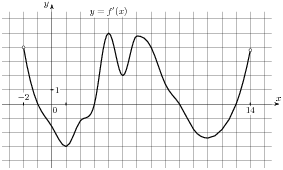 На ри­сун­ке изоб­ра­жен гра­фик про­из­вод­ной функ­ции f левая круг­лая скоб­ка x пра­вая круг­лая скоб­ка ,