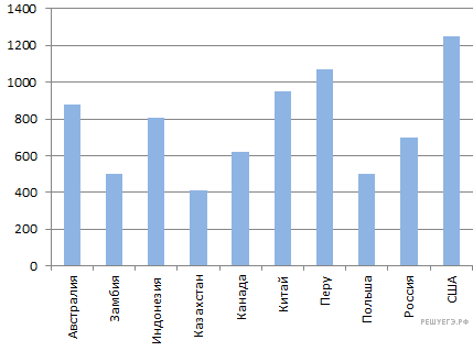 На диаграмме показано распределение выбросов углекислого газа в атмосферу в 10 странах мира (в миллионах тонн) за 2006 год. Среди представленных стран первое место по выбросу углекислого газа в атмосферу занимали США, десятое место — Казахстан. Какое место занимал Китай?