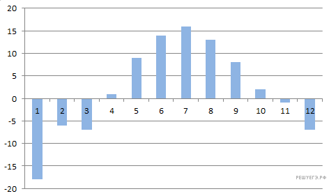 На диаграмме показана средняя температура воздуха (в градусах Цельсия) в Санкт-Петербурге за каждый месяц 1988 года. По горизонтали указываются месяцы, по вертикали — температура в градусах Цельсия. Определите по диаграмме, сколько было месяцев, когда среднемесячная температура была выше нуля.