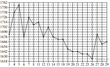 На рисунке жирными точками показана цена золота, установленная Центробанком РФ во все рабочие дни в октябре 2011 года. По горизонтали указываются числа месяца, по вертикали — цена золота в рублях за грамм. Для наглядности жирные точки на рисунке соединены линией. Определите по рисунку, сколько рабочих дней из данного периода цена золота была равна 1678 рублям за грамм.