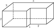 Площадь поверхности заданного многогранника равна разности площади поверхности прямоугольного параллелепипеда с ребрами 2, 3, 5 и площади двух прямоугольников со сторонами 1, 2: