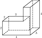 Объем данного многогранника равен сумме объемов параллелепипедов с ребрами 7, 4, 2 и 4, 3, 4: