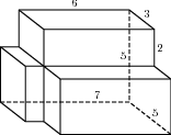 Найдите объем многогранника, изображенного на рисунке (все двугранные углы прямые).Объем данного многогранника равен сумме объемов параллелепипедов со сторонами 5, 3, 3; 6, 3, 3 и 1, 3, 5: