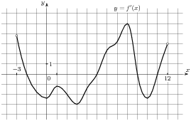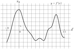 На рисунке изображён график y = f '(x) — производной функции f(x), определённой на интервале (−3; 11). Найдите промежутки возрастания функции f(x). В ответе укажите длину наибольшего из них.