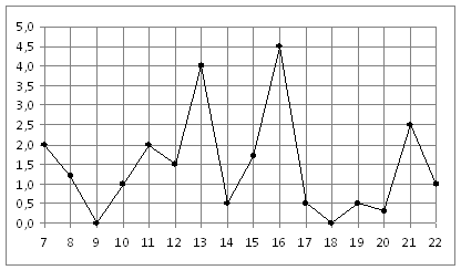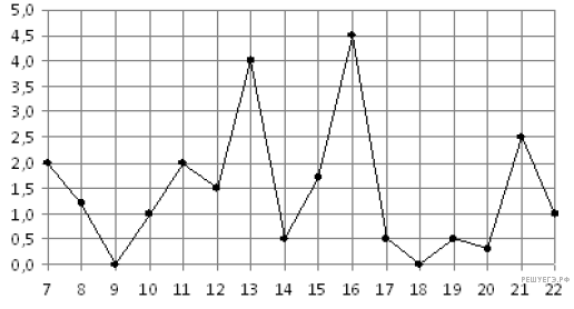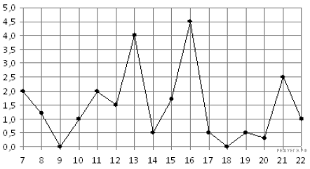 На рисунке жирными точками показано суточное количество осадков, выпадавших в Мурманске с 7 по 22 ноября 1995 года. По горизонтали указываются числа месяца, по вертикали — количество осадков, выпавших в соответствующий день, в миллиметрах. Для наглядности жирные точки на рисунке соединены линией. Определите по рисунку, какого числа за данный период впервые выпало ровно 0,5 миллиметра осадков.