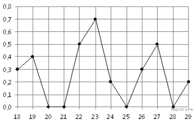 На рисунке жирными точками показано суточное количество осадков, выпадавших в Якутске с 18 по 29 октября 1986 года. По горизонтали указываются числа месяца, по вертикали — количество осадков, выпавших в соответствующий день, в миллиметрах. Для наглядности жирные точки на рисунке соединены линией. Определите по рисунку, сколько дней из данного периода выпадало от 0,1 до 0,6 миллиметров осадков.