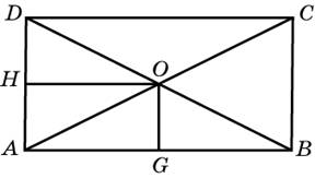 В прямоугольнике расстояние от точки пересечения диагоналей до меньшей стороны на 1 больше, чем расстояние от нее до большей стороны. Периметр прямоугольника равен 16. Найдите меньшую сторону прямоугольника.