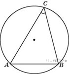 Радиус окружности равен 1. Найдите величину острого вписанного угла, опирающегося на хорду, равную Ответ дайте в градусах.По теореме синусов для треугольника ACB имеем: