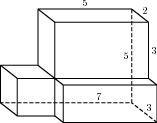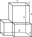 Найдите площадь поверхности многогранника, изображенного на рисунке (все двугранные углы прямые).
