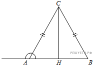В равнобедренном треугольнике ABC основание AC равно 50, высота CH равна 30,1. Пользуясь таблицей тригонометрических функций, найдите угол ACB (при необходимости результат округлите до целого числа градусов).
