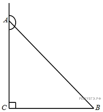 В треугольнике ABC угол C равен 90°, тангенс внешнего угла при вершине A равен -0,5,